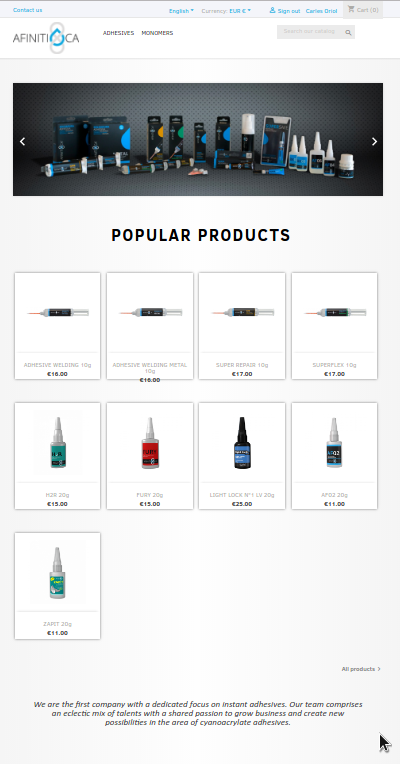 Headquartered in Barcelona, Afinitica creates unique and innovative products based on cyanoacrylates, including odorless products that do not stain, products based on new monomers, flexible products, two-component versions and also gels with long open times relative to traditional cyanoacrylates. Such products combine adjusted speed, ease of application, high performance and universal use.