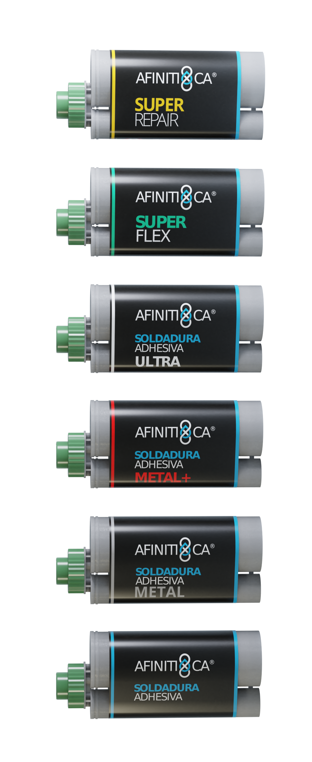 Afinitica ofrece una gama especializada de adhesivos instantáneos bicomponentes, sellantes y productos de reparación extraordinarios, así como superglues inodoros de calidad e innovadores geles para aplicaciones de montaje y adhesión de áreas extensas. El producto de reparación conocido como 'Super Repair' ya ha sido extremadamente bien recibido en el mercado de recambios de la automoción. La empresa ha desarrollado asimismo un proceso tecnológico puntero para la producción de una amplia gama de monómeros de adhesivos instantáneos y otro pilar importante de la estrategia de la empresa es la introducción masiva de superglues fáciles de usar, sin olor y no irritantes.